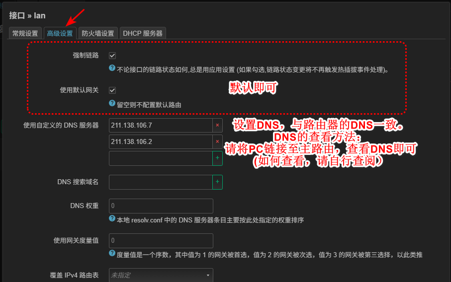 常见的 DNS 填写位置如下: