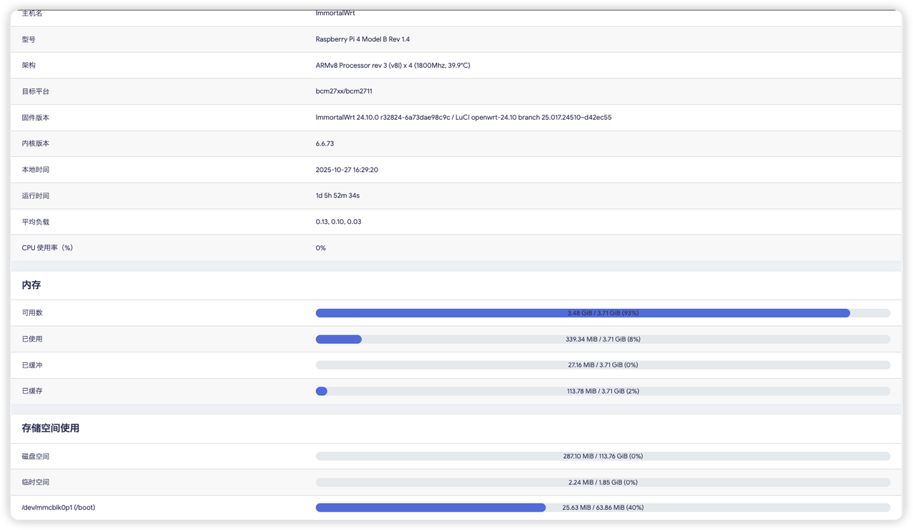 由于题主的SD卡是128GB,全部挂载到了Openwrt系统上,但整个系统一共消耗的资源只有287MB,有点大材小用了。遂计划备份后换到一个4GB的内存卡上。